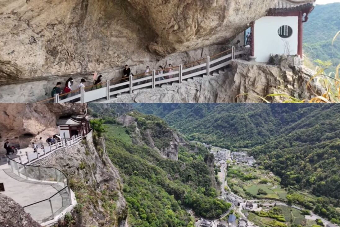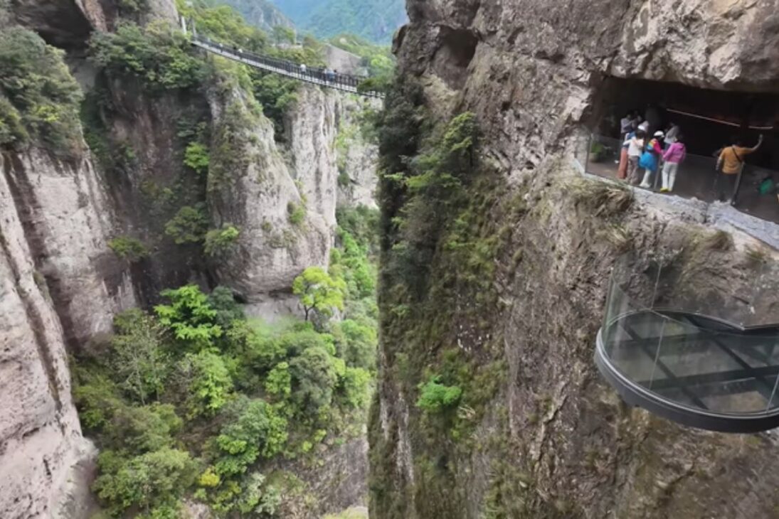 A caverna quadrada da China, localizada na Montanha Yandang, combina formações vulcânicas, templos taoístas e passarelas suspensas a 200 metros de altura, onde até um café nas nuvens desafia a gravidade