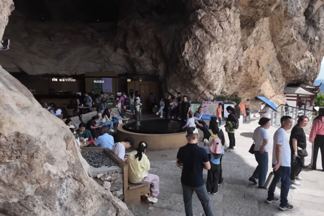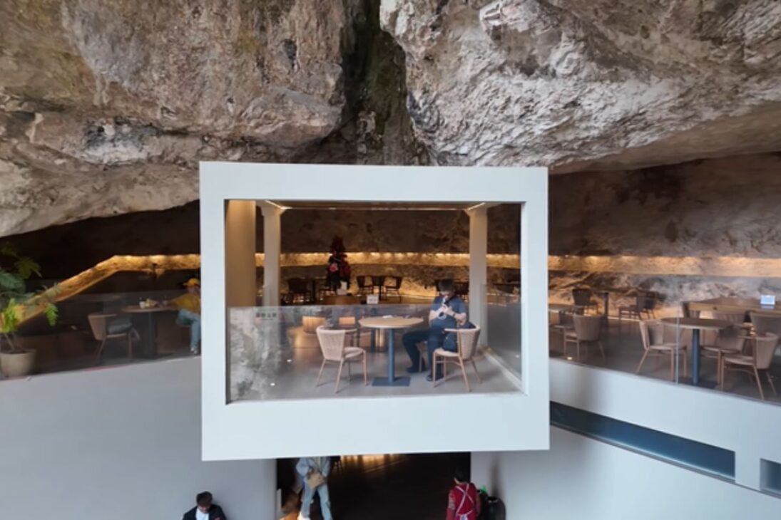 No interior da própria rocha, surge uma surpresa moderna: um café suspenso dentro da caverna. O local preserva as texturas originais da pedra e oferece uma experiência que combina design minimalista e integração total com o ambiente natural. O slogan informal dos visitantes é “chá da tarde no topo das nuvens”.