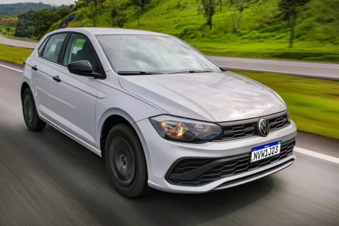 Líder de vendas no país, o Volkswagen Polo na versão Track aparece entre os primeiros colocados. O modelo de entrada tem motor 1.0 aspirado de 84 cv e câmbio manual, enquanto as demais configurações utilizam o 1.0 turbo de até 116 cv. A cesta de peças avaliada em pouco mais de R$ 7,7 mil reforça o apelo do hatch como carro popular de manutenção barata.