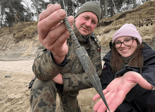 Jacek Ukowski e Katarzyna Herdzik estavam explorando uma praia logo após uma tempestade quando fizeram a descoberta.