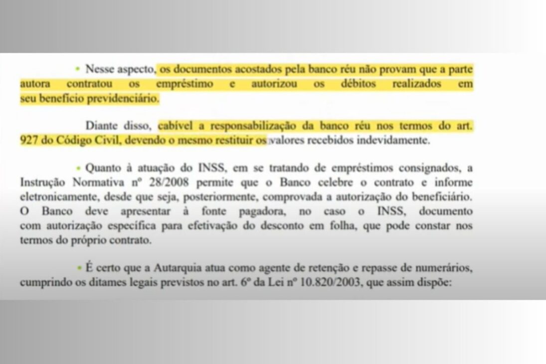 Além do banco, o INSS também foi citado, já que deveria ter conferido a veracidade dos dados antes de lançar os descontos no sistema.
