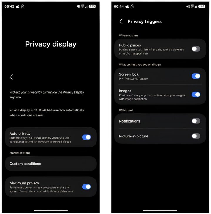 Na prática, a tecnologia cria uma espécie de “escudo invisível”, ajustando dinamicamente os pixels da tela OLED para tornar ilegíveis as informações quando vistas em ângulos diferentes da visão frontal. Ou seja, se alguém tentar espiar suas mensagens, senhas ou dados bancários no transporte público ou em filas, não verá nada além de distorções luminosas.