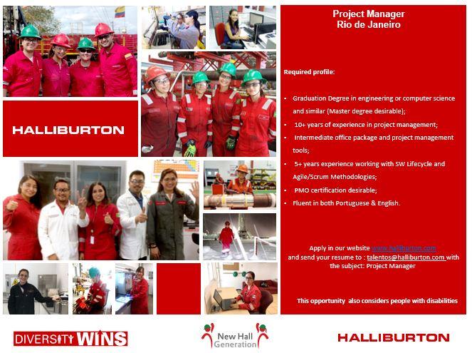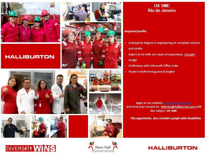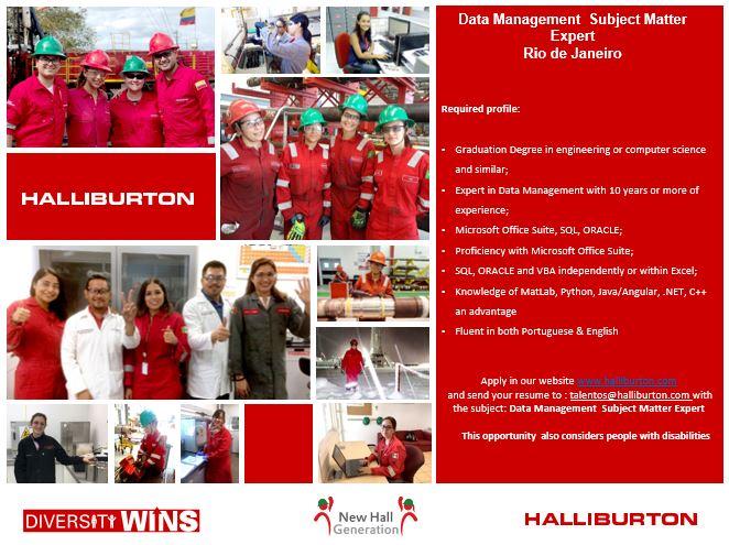 Recursos Humanos da Halliburton iniciou ontem(15) a tarde várias oportunidades na área técnica e engenharia para seus projetos no RJ