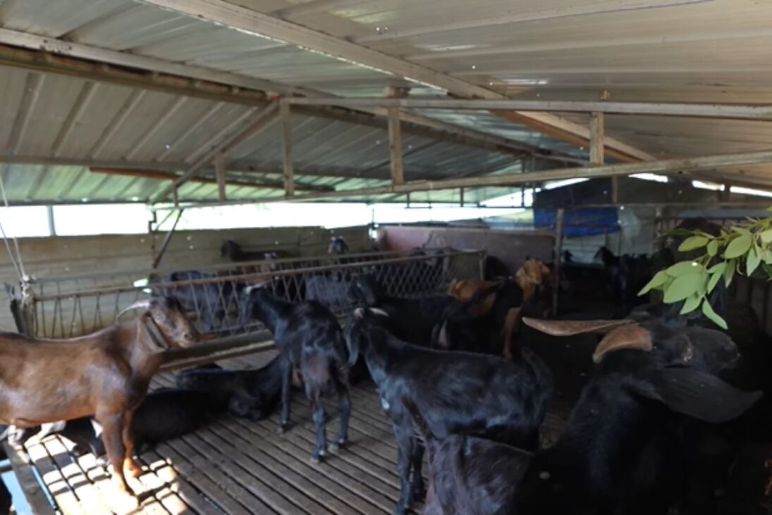 Essa solução estrutural prioriza ventilação e aproveitamento do terreno íngreme, fatores relevantes para a sanidade do rebanho.