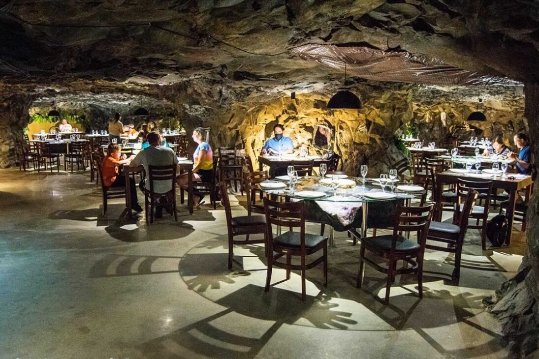 Minas desativadas foram recicladas em atrativos, criando uma rota turística subterrânea sem similar no país. Restaurantes em galerias, com mesas adornadas por geodos, convivem com piscinas a dezenas de metros de profundidade e com a única cervejaria em operação debaixo da terra experiências que transformam o visitante em explorador.