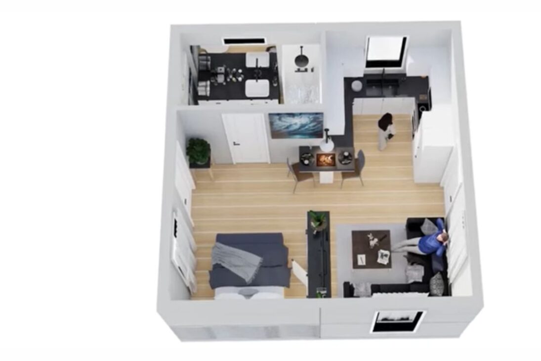 Mesmo sendo uma residência de poucos metros quadrados, a Tesla cria mini casa com solução de mobiliário versátil. Sofá que vira cama, mesa que se converte em estação de trabalho e armários embutidos que funcionam também como isolantes acústicos estão entre os recursos mencionados no conceito.