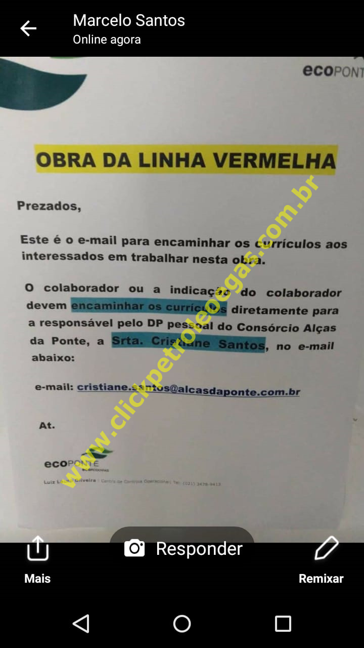 Fontes confiáveis do Click Petróleo nos reportaram estas informações simultaneamente, como sempre, nossa equipe procura confirmar com exclusividade tudo que postamos em nosso portal afim de levar o melhor conteúdo verdadeiro e com a propriedade que vocês conhecem. Então meus amigos, o momento é esse e que vai construir a ponte será a concessionaria Ecoponte, assistam o relato de nossos seguidores e depois a lista de possíveis vagas para candidaturas:
