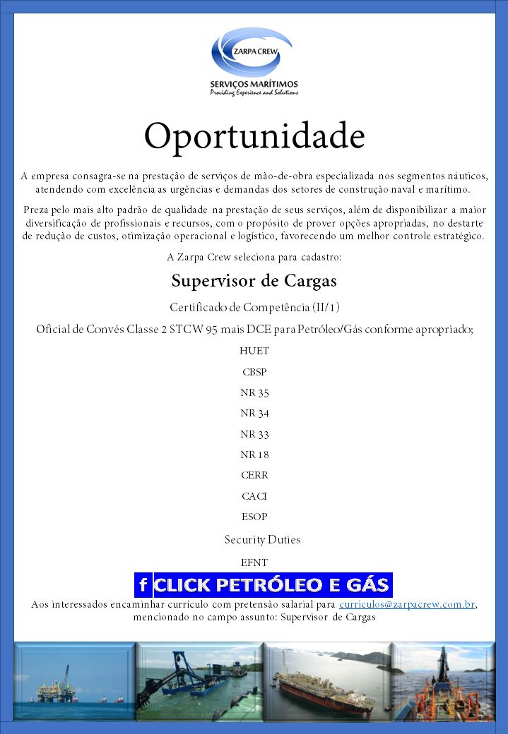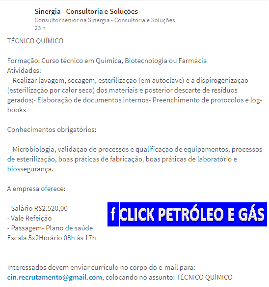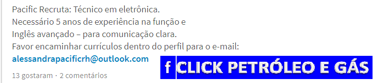 O Click Petróleo e Gás pede encarecidamente a você seguidor, que só mandem seus currículos se você se enquadrarem nas atribuições da vagas, pôis as empresas tem recursos de bloquear e-mails de pessoas que ficam mandando CV’s que não correspondam ao critérios da vagas, além de ficar fazendo spam, atrapalhando os processos seletivos. Tenham paciência porque sua vez está chegando, basta acompanhar nossas publicações. Logo abaixo no SlideShow, vejam os e-mails e os contatos das empresas nas fotos.